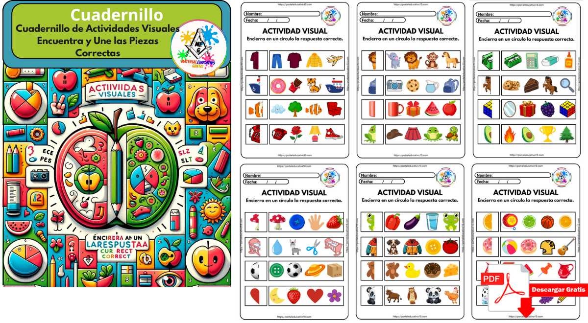 Presentamos el cuadernillo «Actividades Visuales: Encierra en un Círculo la Respuesta Correcta», una herramienta educativa diseñada para desarrollar la percepción visual y las habilidades de razonamiento de los niños. Este cuadernillo propone un conjunto de actividades donde los niños deben adivinar y unir la mitad de un dibujo con su correspondiente completación entre varias opciones.